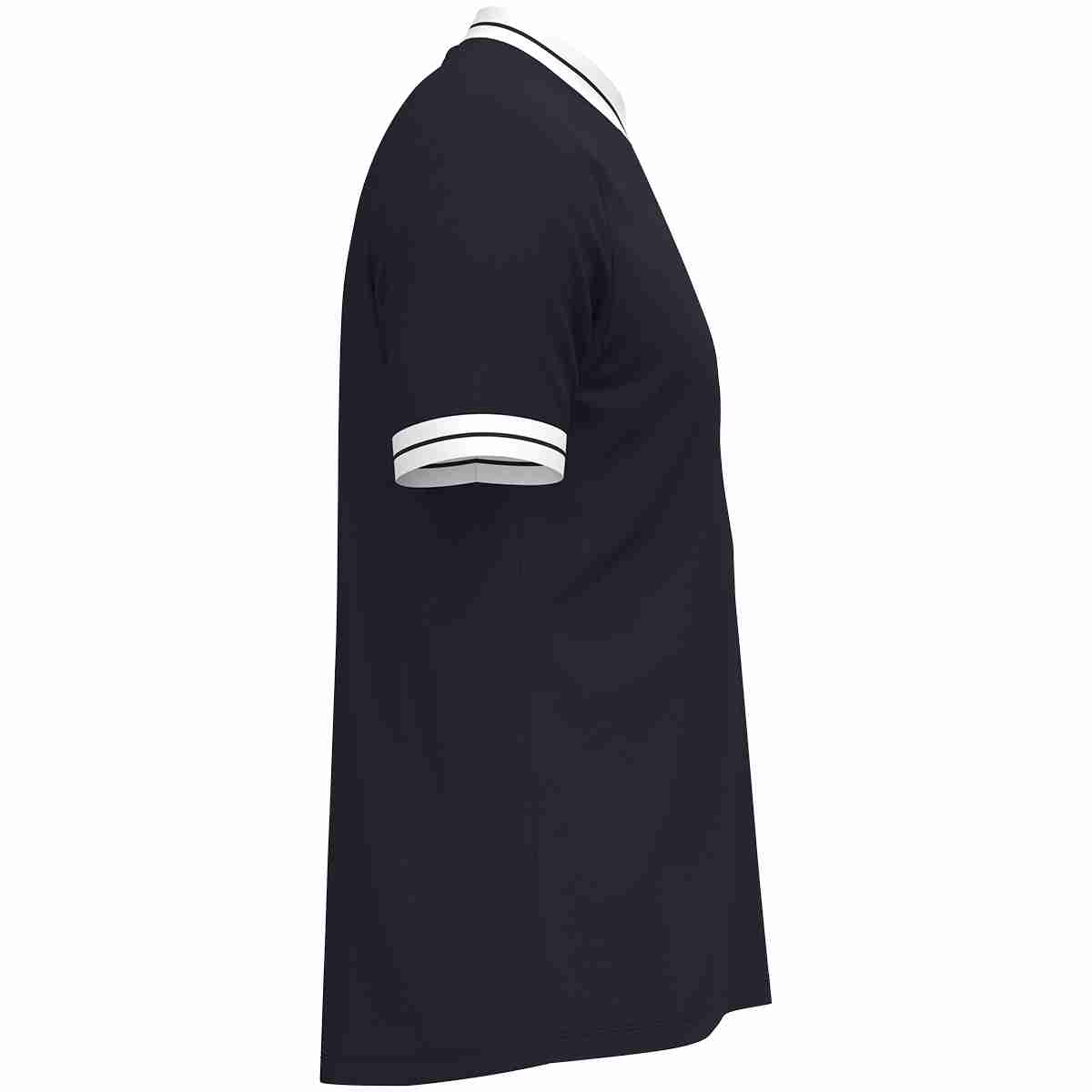 Das schnelltrocknende Polyestermaterial reduziert die Aufnahme von Feuchtigkeit und sorgt für ein leichtes, komfortables Gefühl während des gesamten Spiels. Die Raglan-Ärmel ermöglichen eine natürliche Bewegungsfreiheit im Schulterbereich und unterstützen dynamische Aktionen auf dem Platz. Ergänzt wird das Design durch einen Rippkragen mit V-Ausschnitt sowie Rippbündchen an den Ärmelabschlüssen, die für stabilen Sitz und hohen Tragekomfort sorgen.